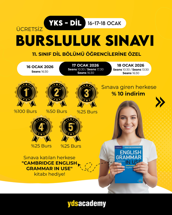 Sınavımıza katılan tüm 11. sınıf dil öğrencilerine Cambridge English Grammar in Use kitabı hediye edilecektir.