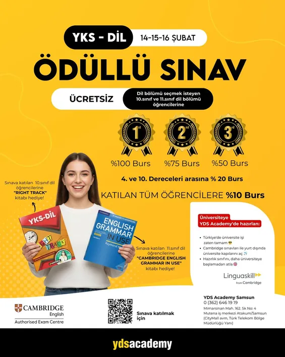 Sınavımıza katılan tüm 10. sınıf öğrencilerinee YKS-DİL Right Track Kitabı hediye edilecektir.